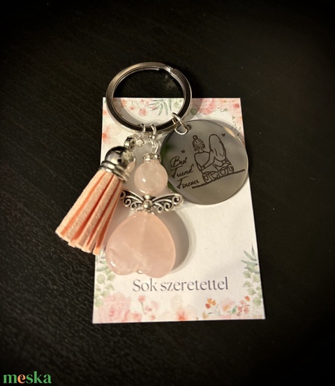 Rózsakvarc Ásvány Angyalkás Kulcstartó