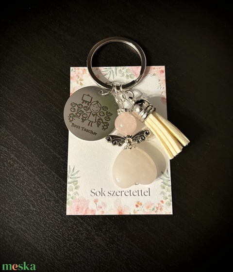 Rózsakvarc Ásvány Angyalkás Kulcstartó