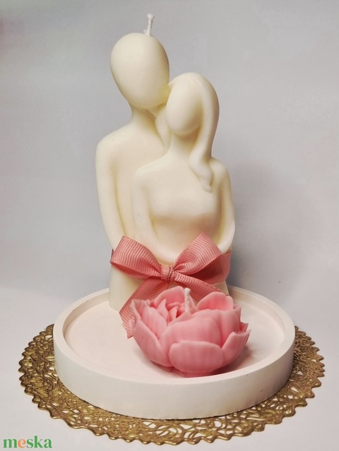 Szerelmespár gyertyaszett szív alakú rózsa gyertyával