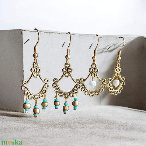 Fülbevaló arany színű alapra gyöngyök