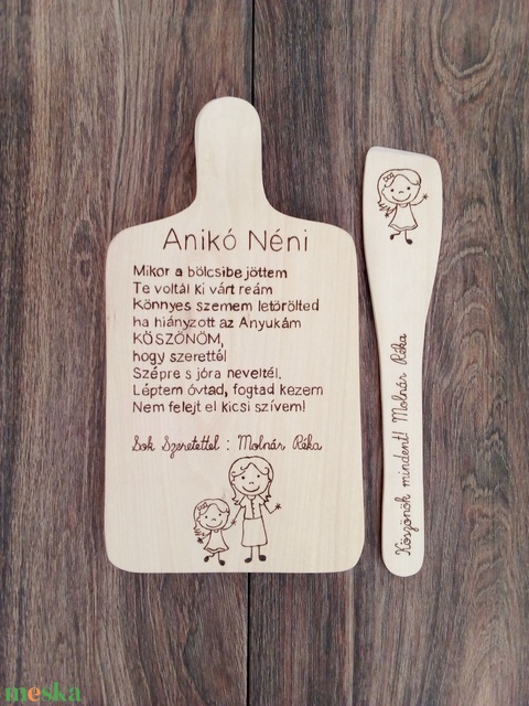 Bölcsis búcsúajándék, óvodai búcsú ajándék vágódeszka, fakanál, teflon lapát szett - 2 darabos