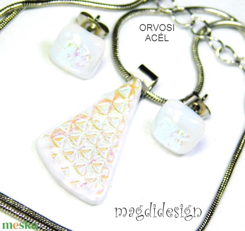 Fehér dichroic üvegékszer szett nyaklánc stiftes fülbevaló 2