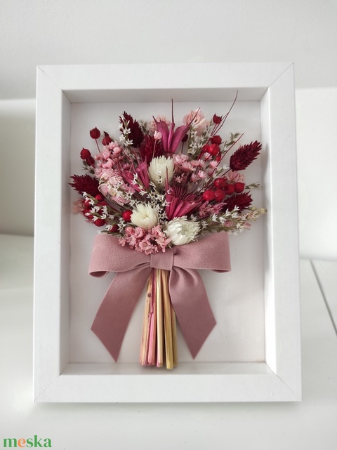 - Anyaga: képkeret, szárazvirág, bársonyszalag