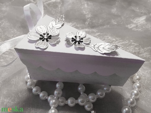 Esküvői meghívó - tortaszelet ezüst cseresznyevirágokkal