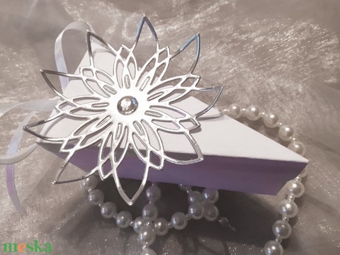 Esküvői meghívó - tortaszelet elegáns ezüst virággal