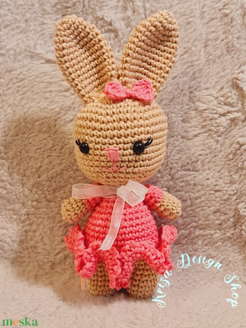 Kézműves horgolt kabala figura - Milli nyuszi (Tavaszi tulipán)
