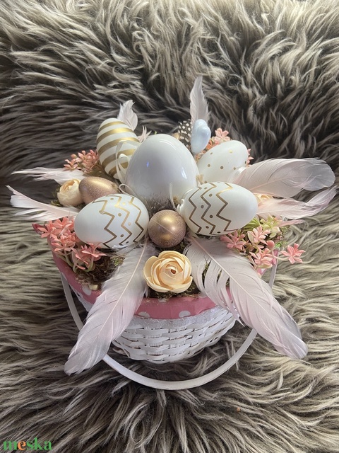 Fonott kosárban tojásos asztaldísz