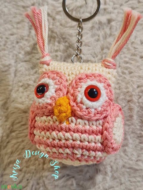 Kézműves horgolt kabalafigurás kulcstartó - Mini bagoly (Cream tulip 2.)