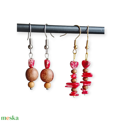 Fülbevaló piros ❤️ és korall vagy fa
