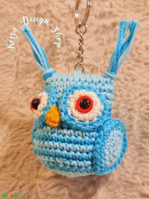 Kézműves horgolt kabalafigurás kulcstartó - Mini bagoly (Leona)