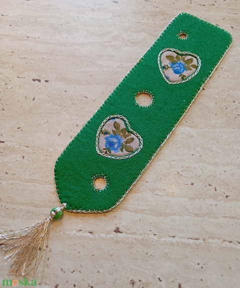 Zöld filc könyvjelző virágmintás szívmotívummal