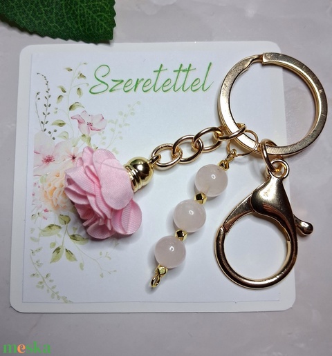 Rózsakvarc ásványos virágos kulcstartó – szeretet, harmónia