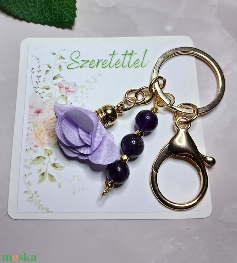 Ametiszt ásványos virágos kulcstartó – nyugalom, egyensúly