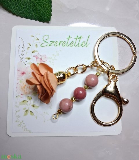 Rodonit ásványos virágos kulcstartó – belső erő