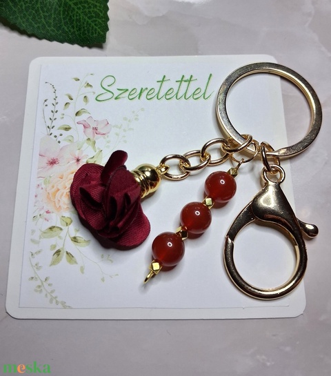 Karneol ásványos virágos kulcstartó – bátorság, lendület