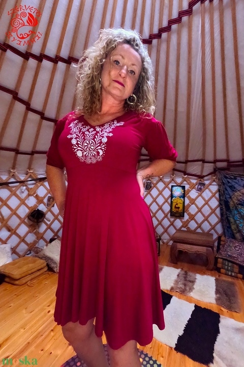 Kincső ruha Szervető-jászsági hímzéssel - vörös-ezüst