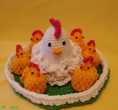 Húsvét asztali dísz tyúk, csibe, kosárban rendelhető