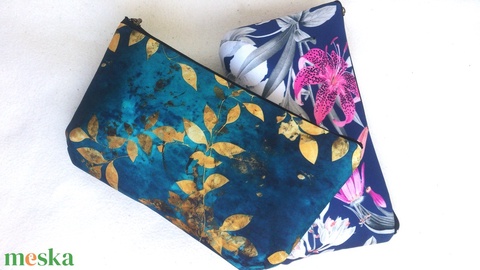 Türkizkék- arany/ púderes virágos neszeszer / - ajándék - nagyobb méret