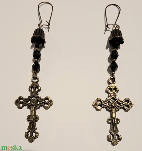 csiszolt gyöngy, bronz gyöngykupak, bronz kereszt, szerelőpálca