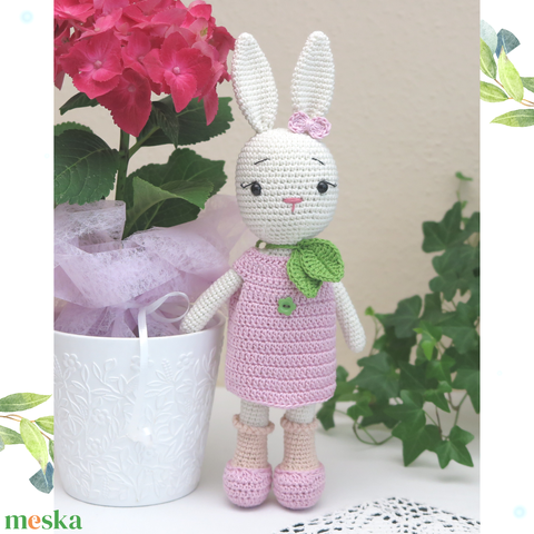 - Anyaga: 100% mercerizált pamutfonal, antiallergén poliésztergolyó töltőanyag, műanyag biztonsági szem, hímzőfonal, gombok