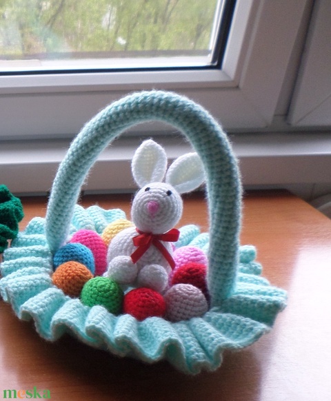 Húsvét asztali dísz nyuszi és tojás kosárban rendelhető