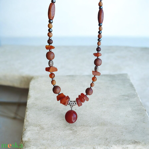 Méz és barna gyöngyökkel nyaklánc