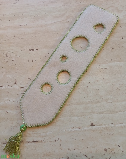 Krémszínű filc könyvjelző világoszöld körmintával