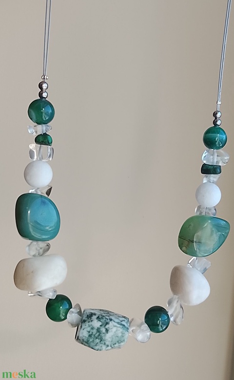 Zöld és fehér gyöngyökkel nyaklánc