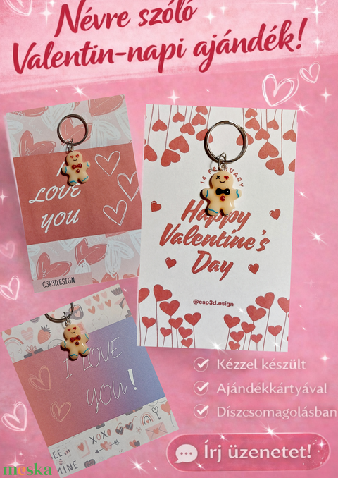 ♡ Valentin-napi ajándék, egyedi Szerelmes Mézis kulcstartó, ajándék kártyával, díszcsomagolásban, új