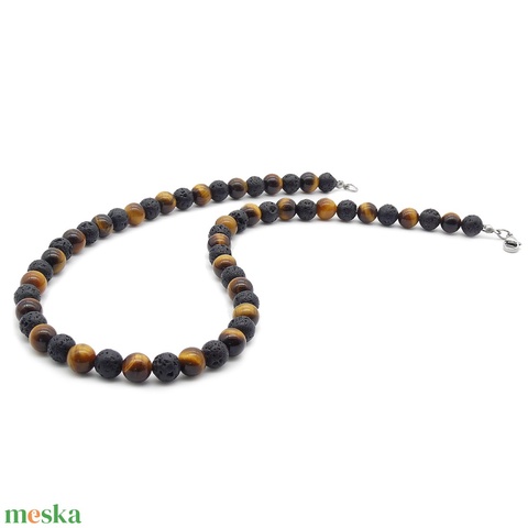 Tigrisszem és lávakő férfi nyaklánc