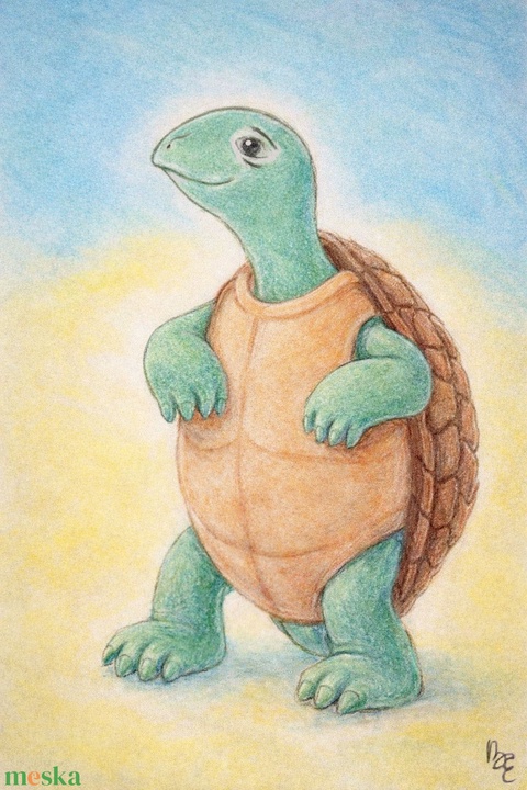 Vidám teknős - rajz - mesefigura, vidám, elenk hangulatú rajz gyerekszobába (digitális/letölthető)