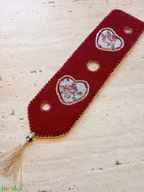 Bordó filc könyvjelző bordószínű rózsás szívmintával