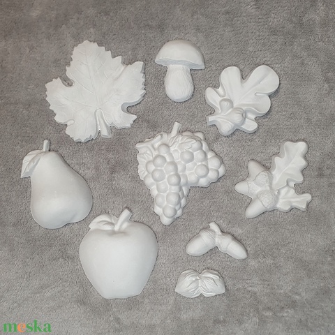 Festhető őszi gipsz figura csomag (levél, gomba, makk, gyümölcsök) - 9 db
