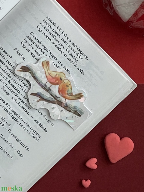 Vörösbegy szerelem mágneses könyvjelző csillogós