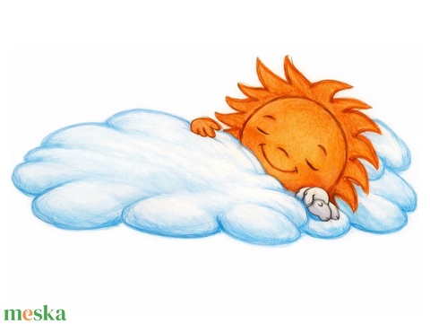 Napocska és bárányka alszanak - mesés hangulati, videm, meleg tónusi kép kis gyerek ágya fölé (digitális/letölthető)