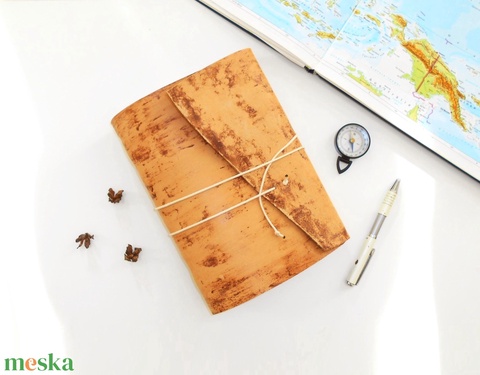 KALANDOR - Valódi bőr borítású kézműves napló A5 méretben - Iránytű motívummal