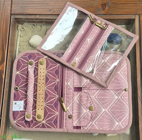 Bordó geometria - ékszertartó utazós neszeszer
