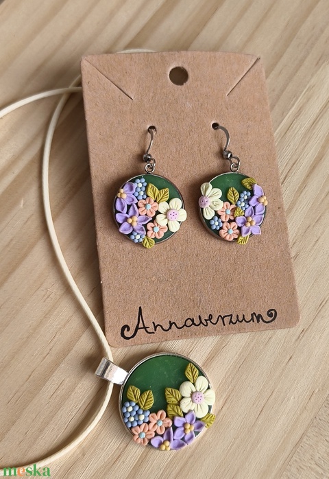 Tavaszi virágos nyaklánc/medál és fülbevaló, szettben