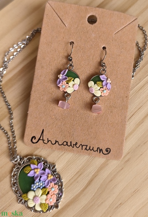 Tavaszi virágos nyaklánc/medál és fülbevaló szettben