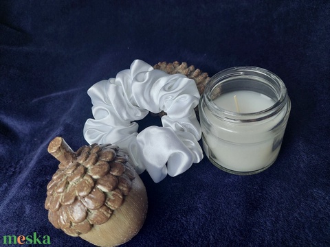 ruha & divat, hajdísz & hajcsat, hajgumi, scrunchie, kézműves, fehér, hófehér, szatén