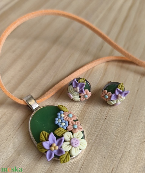 Tavaszi virágos nyaklánc/medál és fülbevaló szettben
