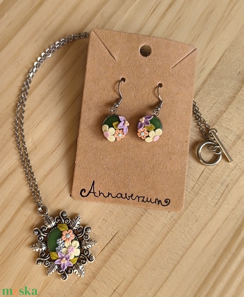 Tavaszi virágos nyaklánc/medál és fülbevaló szettben