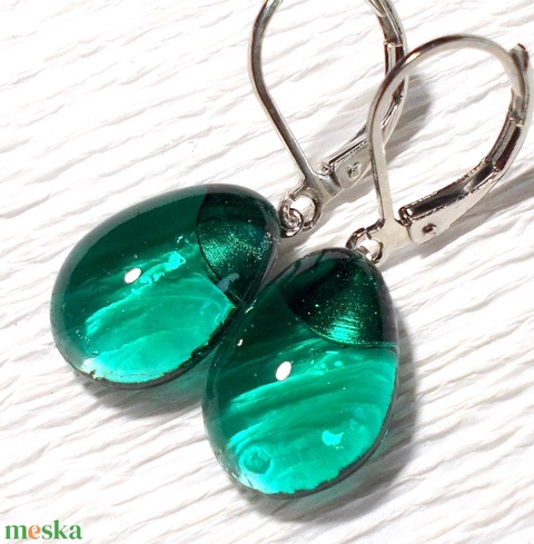 NEMESACÉL! Smaragd cseppek fülbevaló, ajándék nőknek, lányoknak, ballagásra, névnapra, születésnapra.