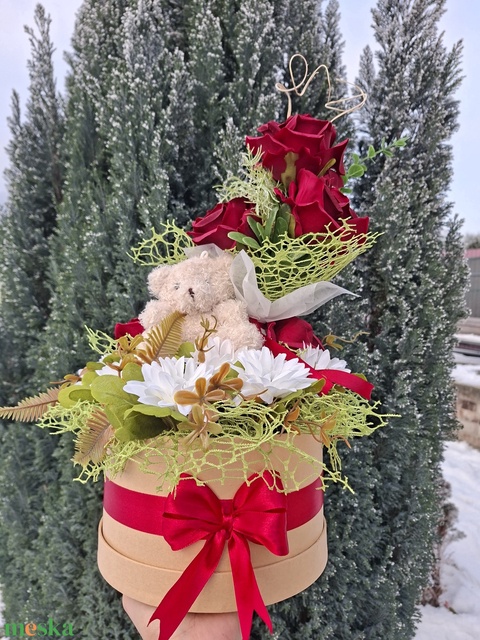 - Anyaga: papír, selyemszalag, művirág, plüss
