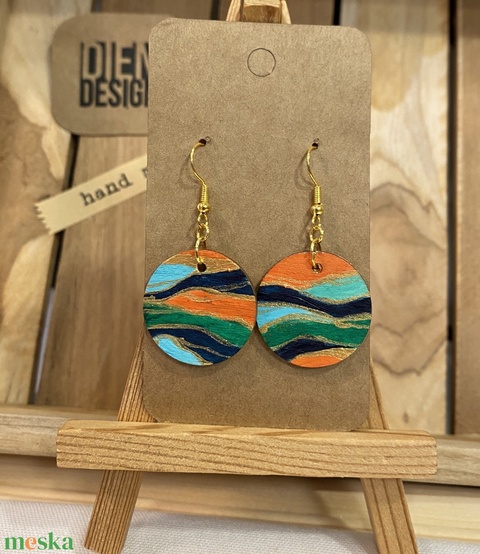 Badacsony - lézzel festett absztrakt színes fa fülbevaló, kerek, kicsi