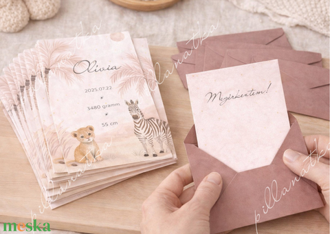„Megérkeztem” – Szafari babaköszöntő kártya (digitális)