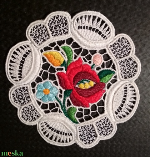 Riseliő csipke kalocsai virágokkal, bogyós szegéllyel