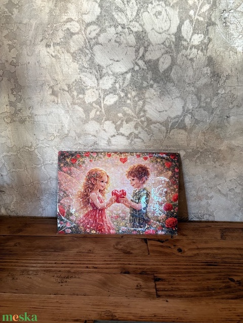 Hűtőmágnes puzzle - Tündér gyerekek Valentin napon