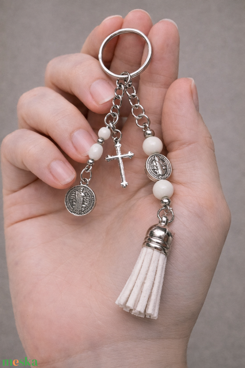 Kulcstartó - fehér Szent Benedek