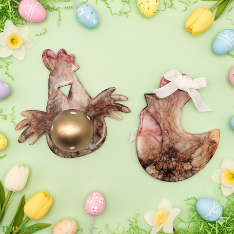 Húsvéti dekoráció szett – epoxi tojásalátét és függődísz, tyúk motívum